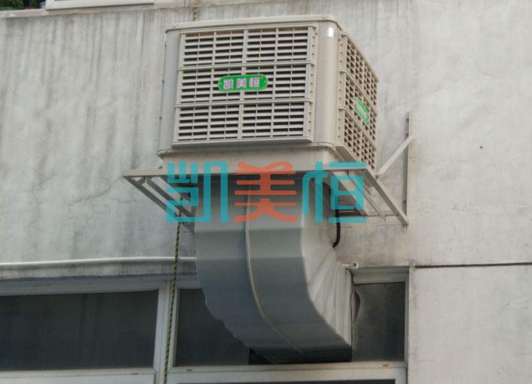 3.環(huán)保空調,對車間外空氣降溫后送入車間內降溫。車間外墻上安裝環(huán)保空調,它是通過風機往車間內送風,室外的新鮮空氣流經浸水的濕簾后空氣與水份充分接觸同時吸收空氣重點中的顯熱,從而達到降溫、換氣、除塵、增加車間內空氣含氧量的目的,這個方案特別適用于高溫及人群密集場所。